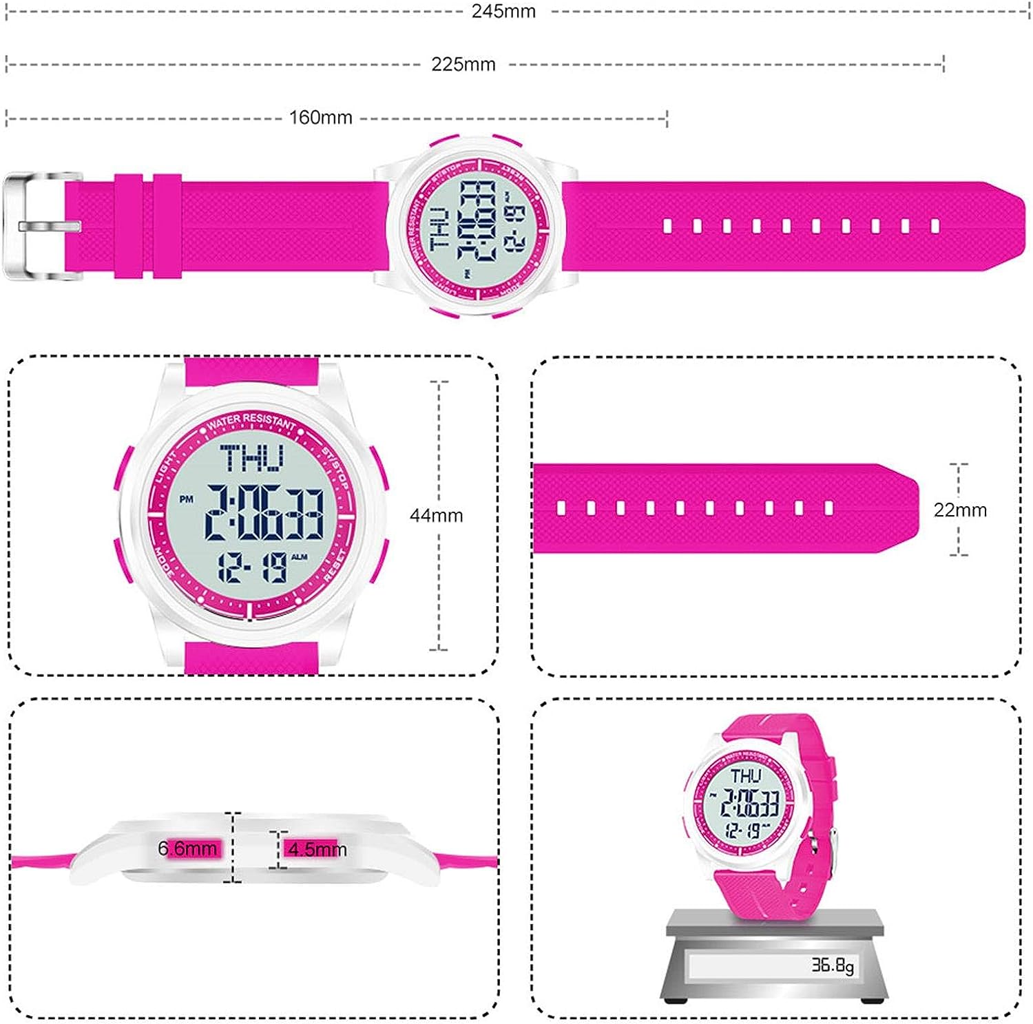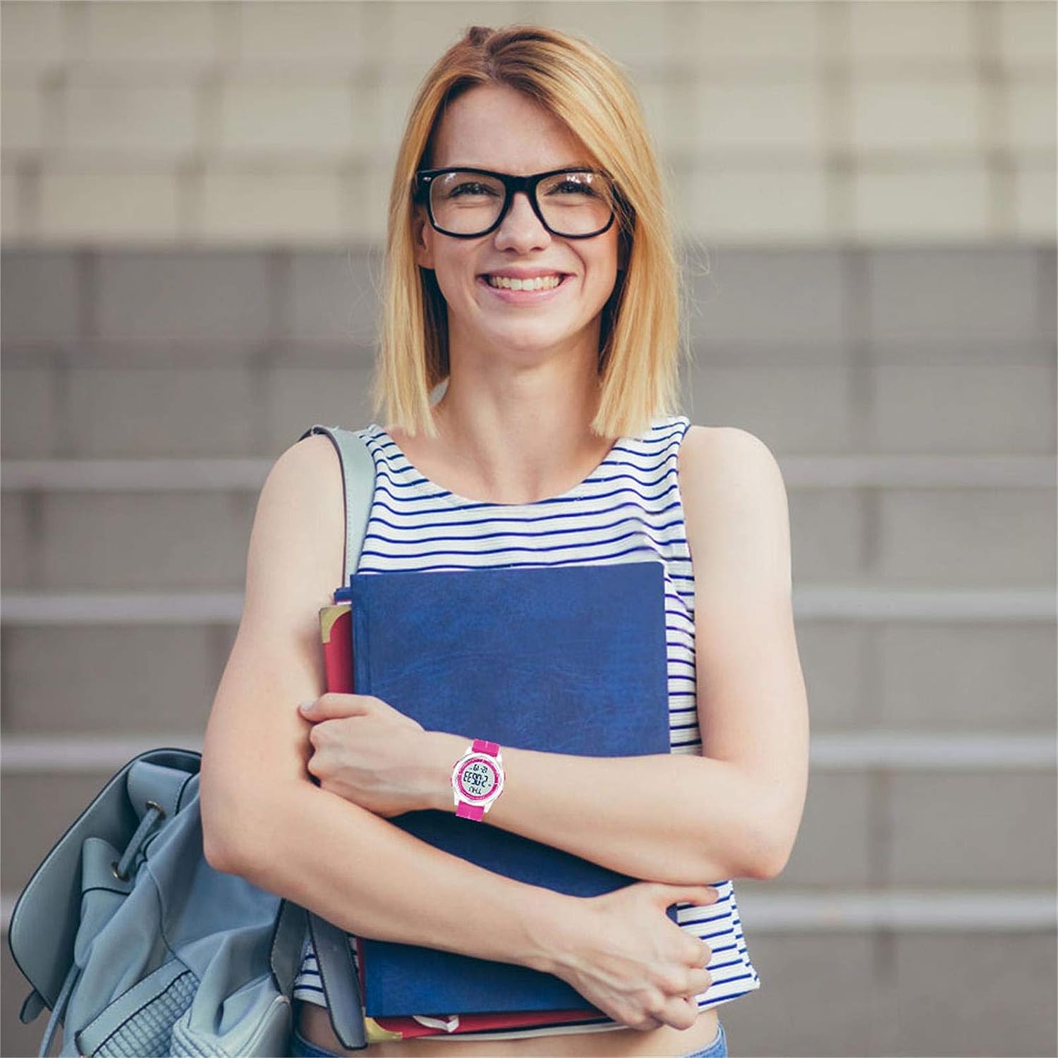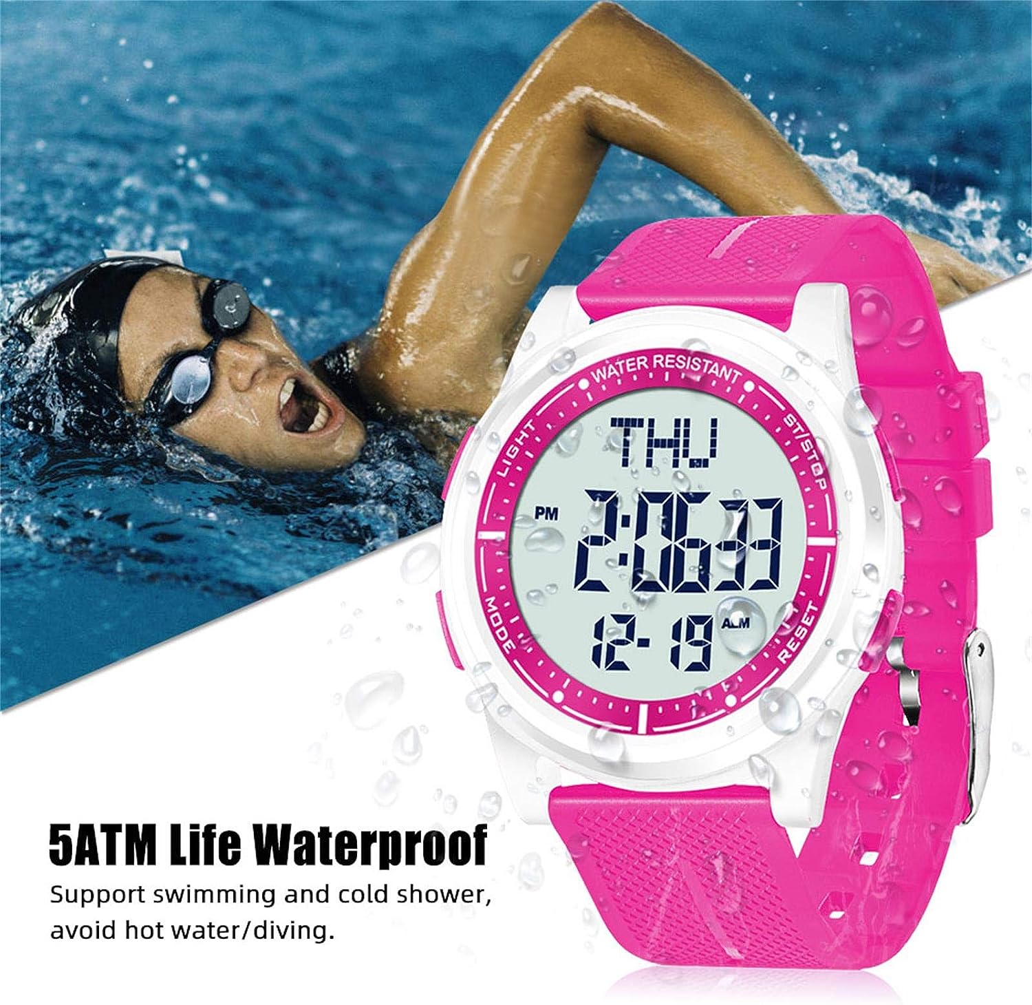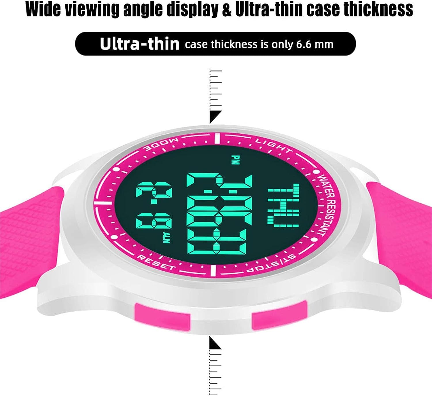 Digital Watch Waterproof with Stopwatch Alarm Countdown Dual Time, Ultra-Thin Super Wide-Angle Display Digital Wrist Watches for Men Women-Pink