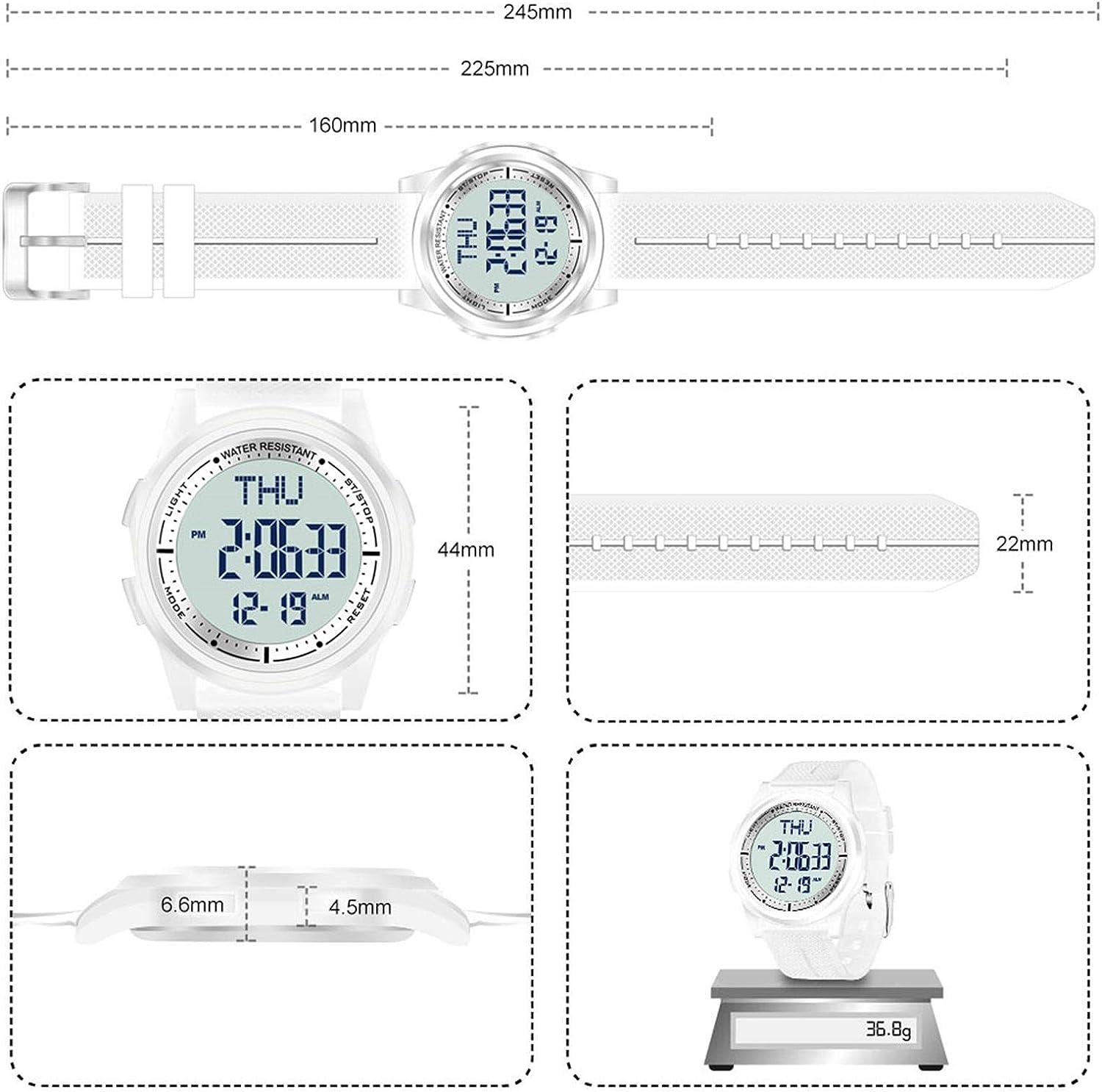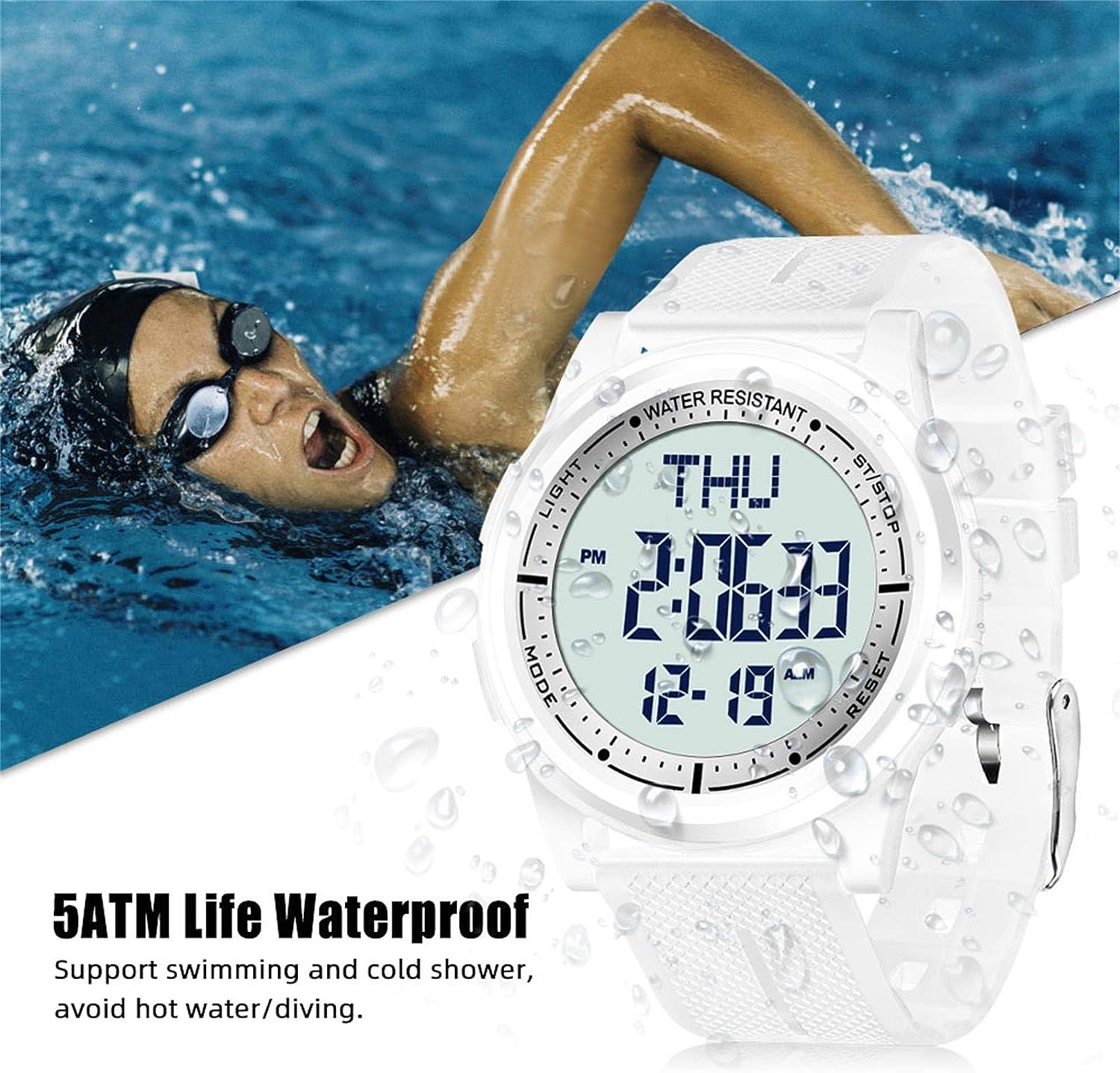Digital Watch Waterproof with Stopwatch Alarm Countdown Dual Time, Ultra-Thin Super Wide-Angle Display Digital Wrist Watches for Men Women-White