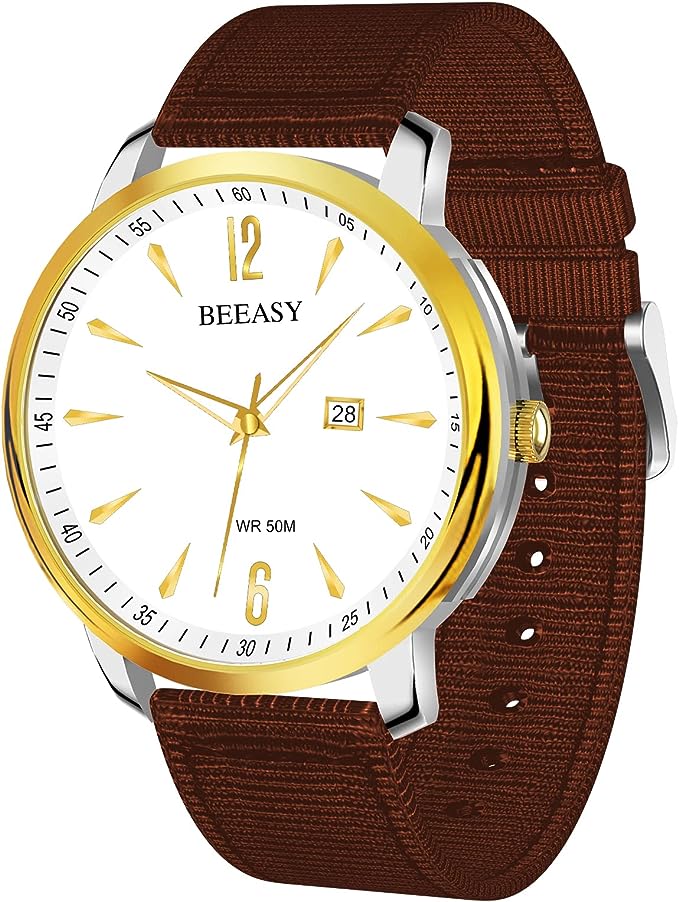 Men Casual Analog Quartz Watch with Calendar Sliver Stainless Steel Case,Waterproof Bussiness Watch with 42mm Black Leather Band,Chronograph Fashion Watch for Men-Brown Nylon