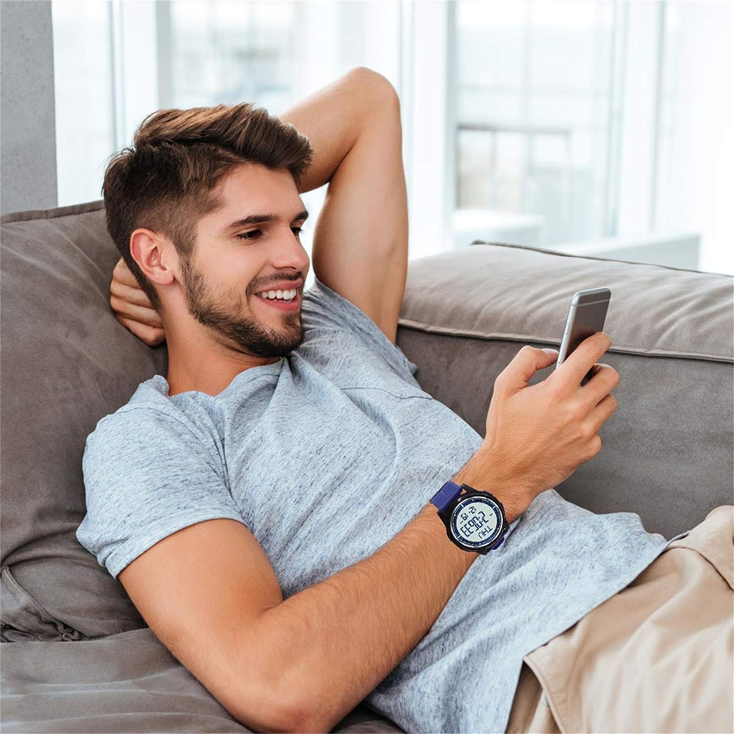 - Mens Digital Watch: Dual time zone, 12/24 hours switch, automatic calendar, alarm clock, hourly alarm and daily alarm