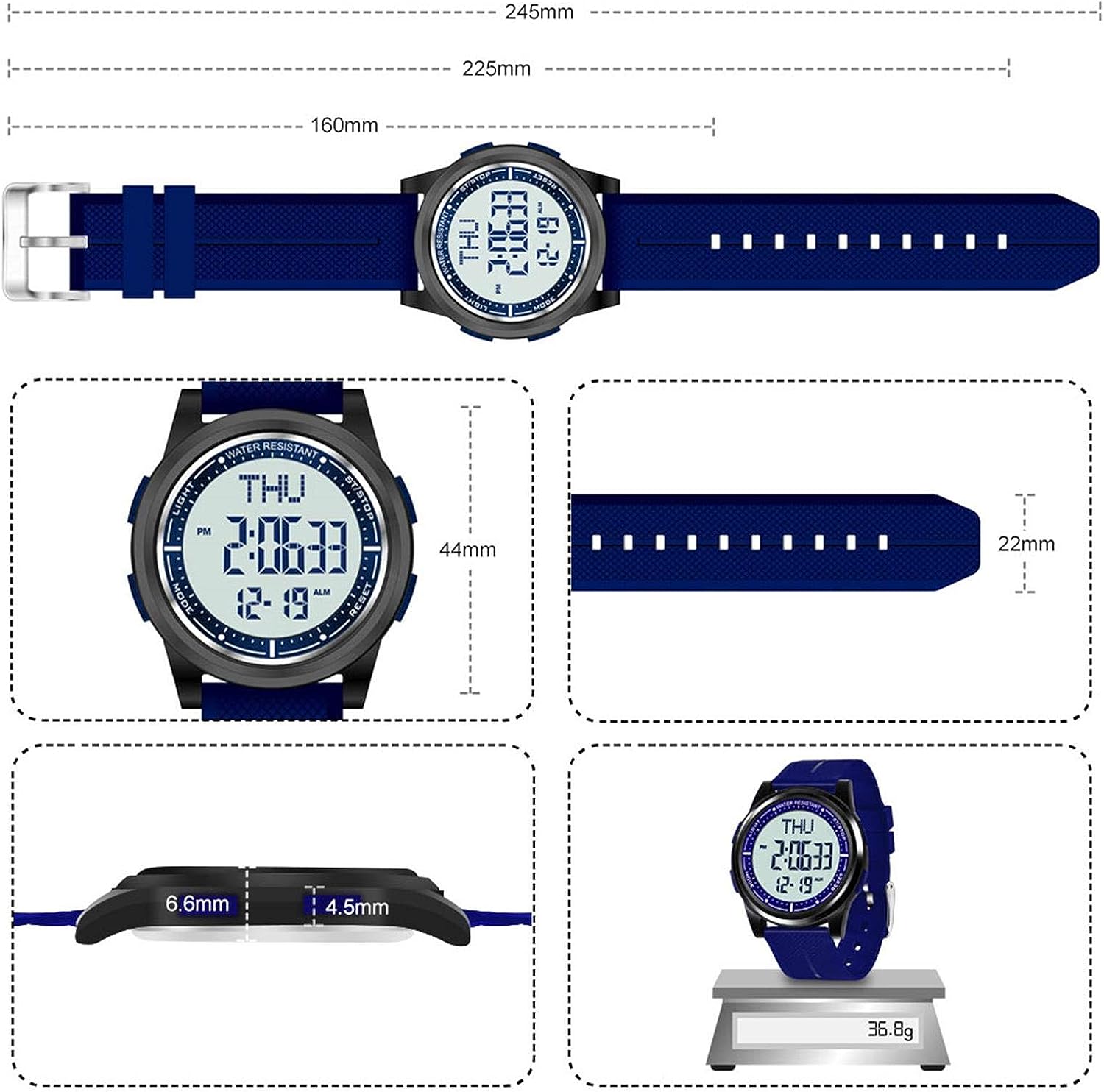 - Ultra-thin Digital Watch: Casual and simple dial design, and ultra-thin case thickness(only 6.6mm), easy wear it in daily life,support backlit
