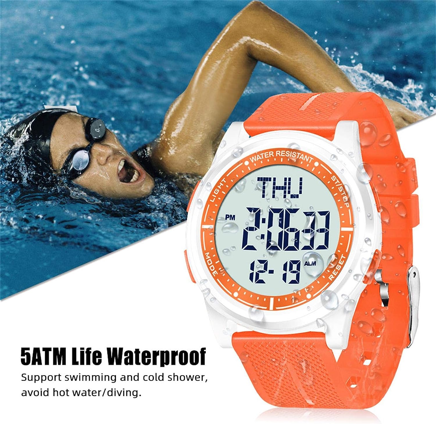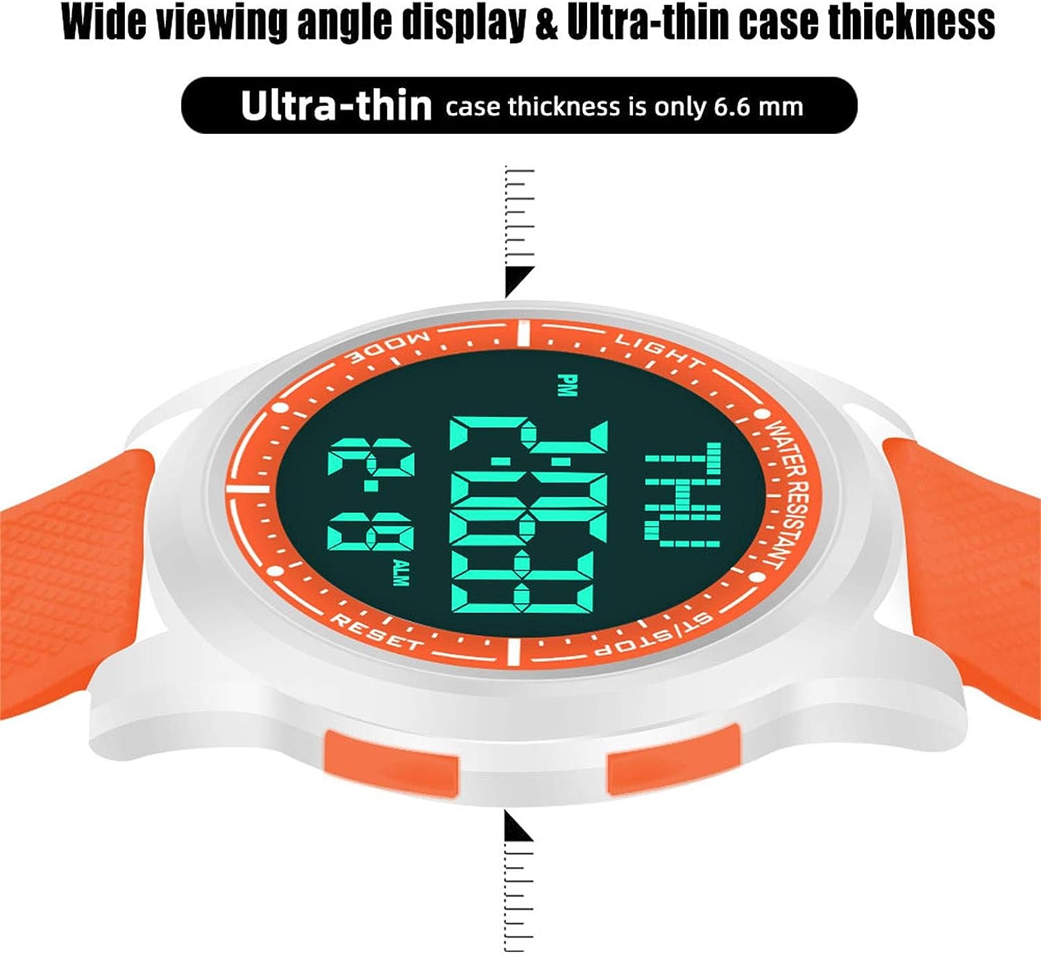 Digital Watch Waterproof with Stopwatch Alarm Countdown Dual Time, Ultra-Thin Super Wide-Angle Display Digital Wrist Watches for Men Women-Orange