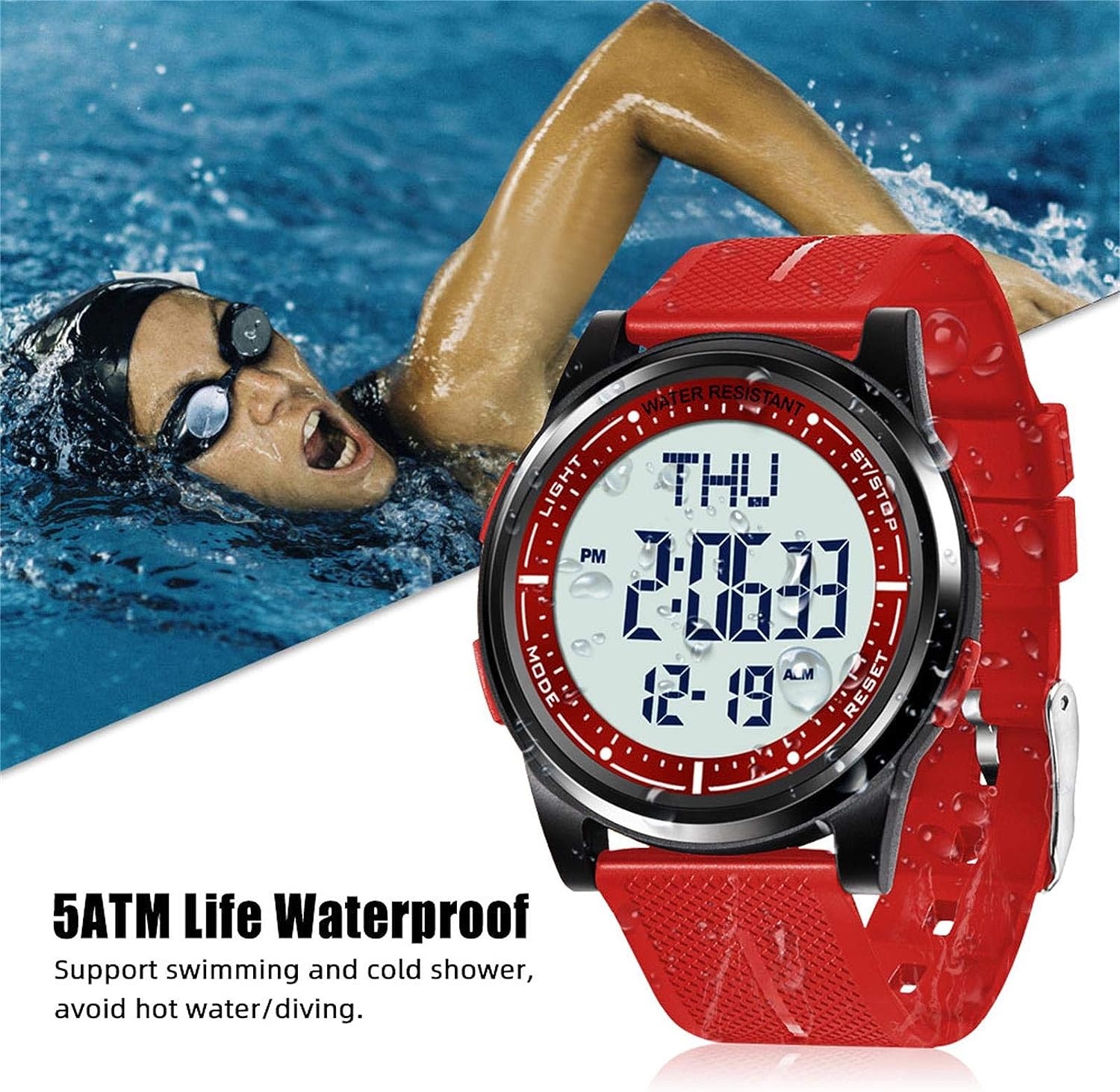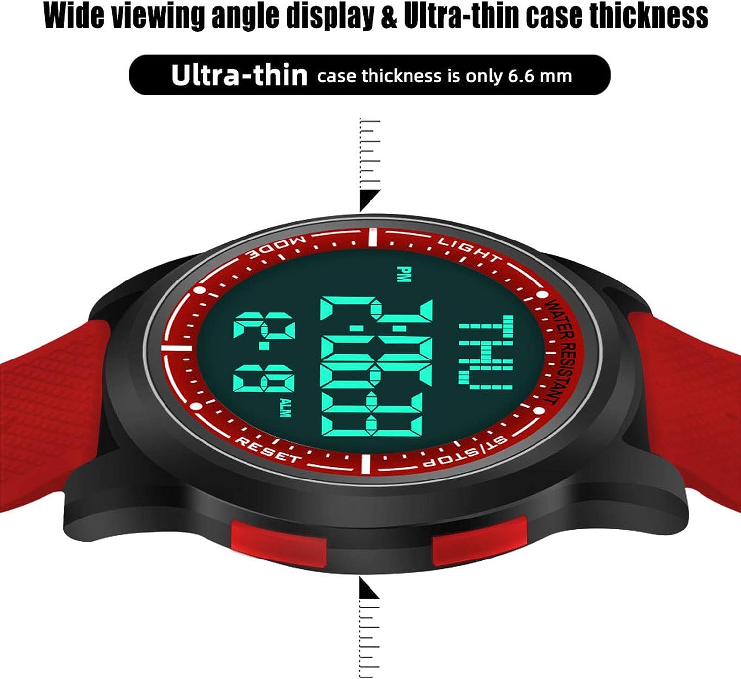 Digital Watch Waterproof with Stopwatch Alarm Countdown Dual Time, Ultra-Thin Super Wide-Angle Display Digital Wrist Watches for Men Women-Red