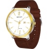 Men Casual Analog Quartz Watch with Calendar Sliver Stainless Steel Case,Waterproof Bussiness Watch with 42mm Black Leather Band,Chronograph Fashion Watch for Men-Brown/Gold